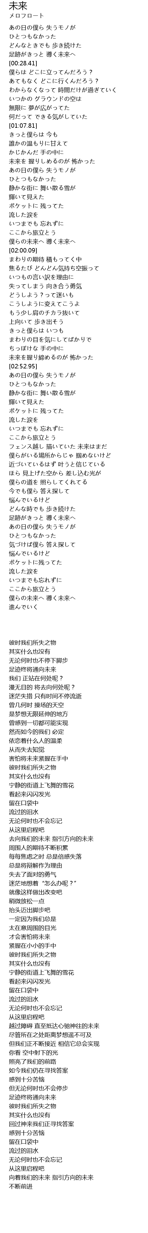 | [01:55.19] | 僕らの未来へ 導く未来へ |