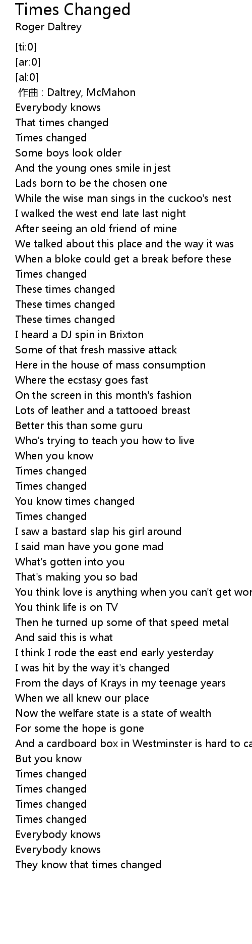 | [00:00.00] | zuò qǔ : Daltrey, McMahon |