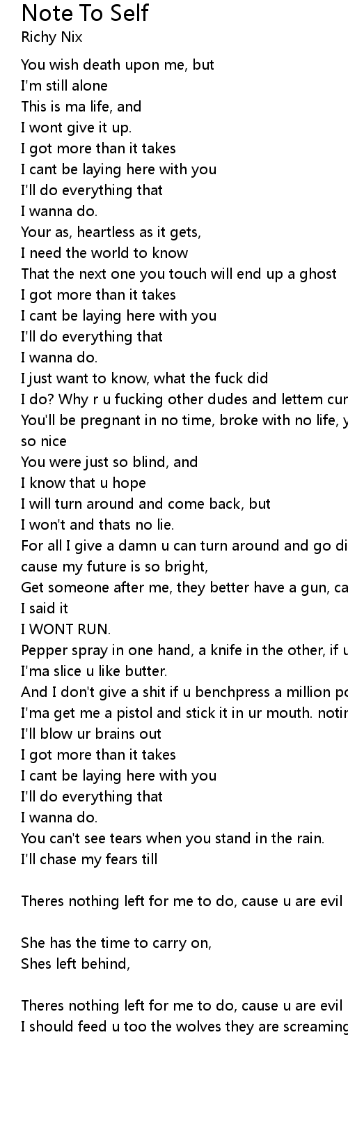 For all I give a damn u can turn around and go die, don't need u in ma life cause my future is so bright, |