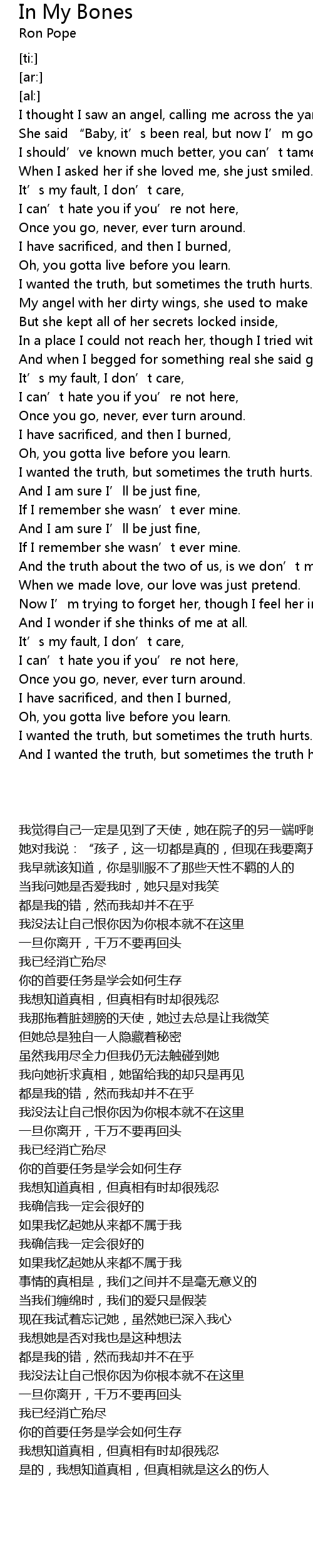 | [03:06.88] | I wanted the truth, but sometimes the truth hurts. |