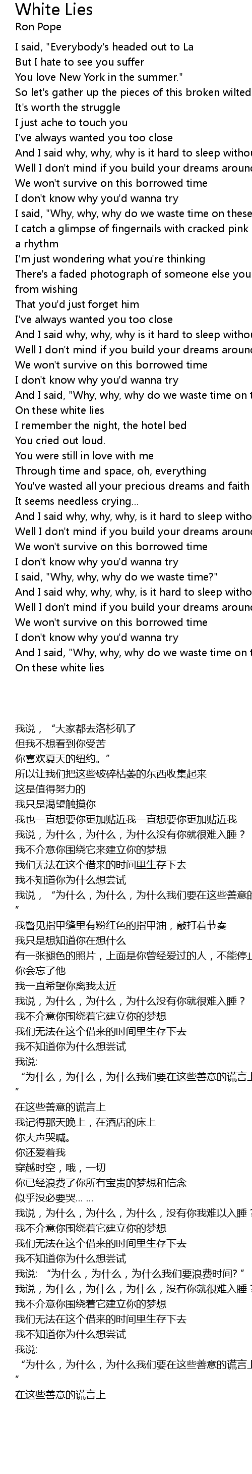 I said, "Why, why, why do we waste time on these white lies?" |