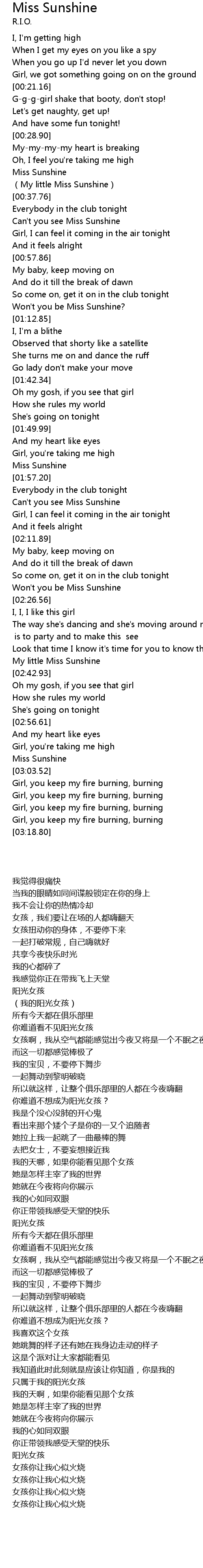 | [00:47.64] | Can' t you see Miss Sunshine |