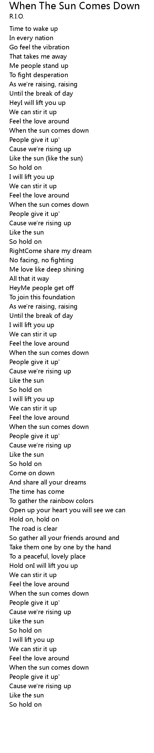 When the sun comes down |
