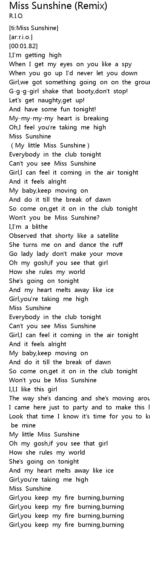 | [00:43.34] | Can't you see Miss Sunshine |