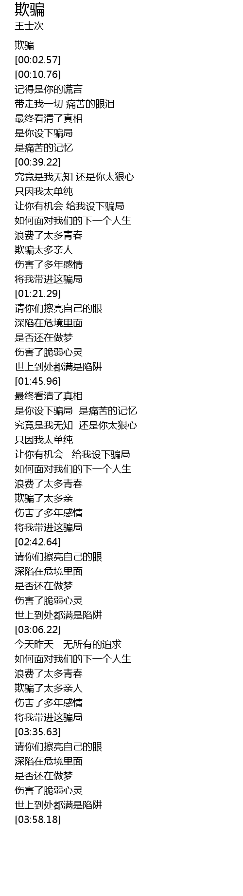 | [03:25.32] | 欺骗了太多亲人 |