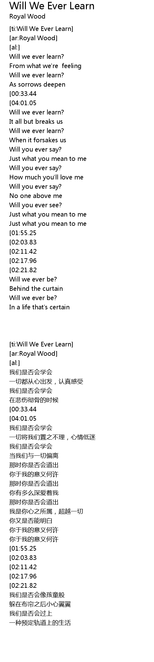 | [ti:Will We Ever Learn] | |