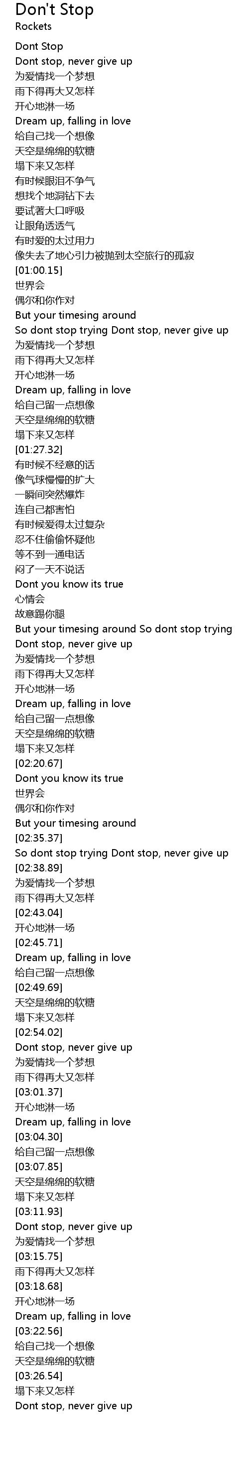 | [02:54.33] | Dont stop, never give up |