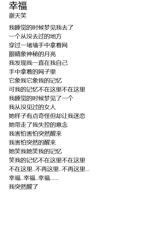 | [03:53.810] | 我睡觉的时候梦见了一个 |