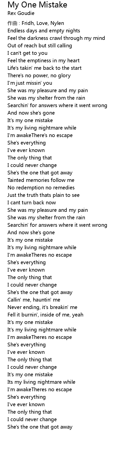 | 歌曲 | My One Mistake |