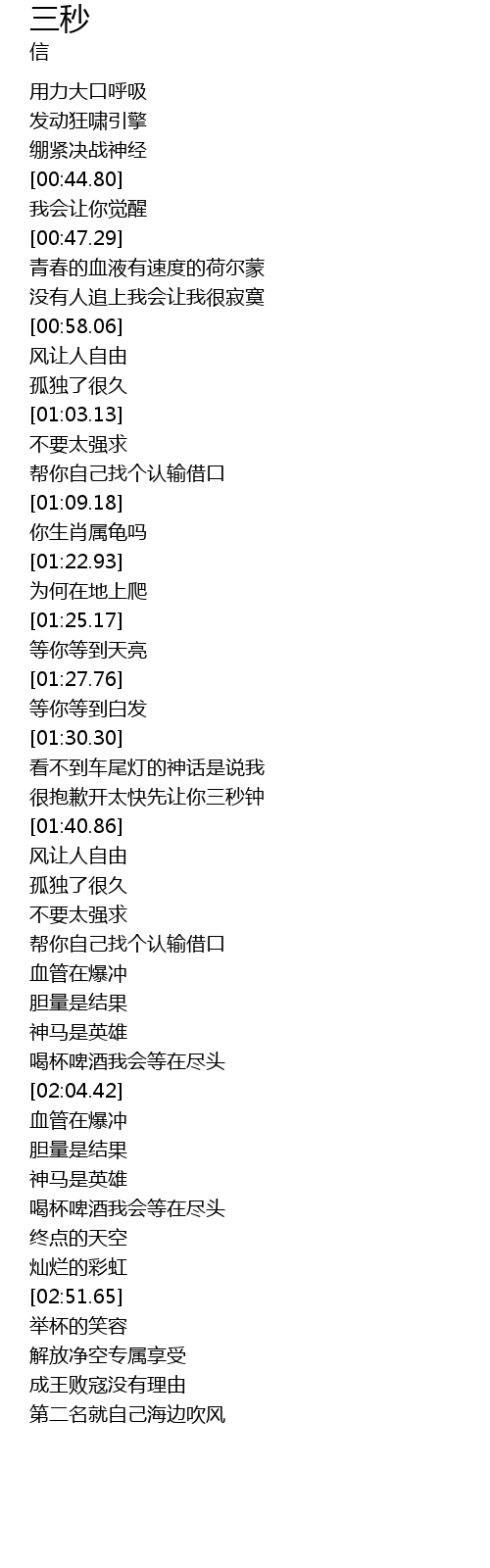 | [01:36.14] | 很抱歉开太快先让你三秒钟 |