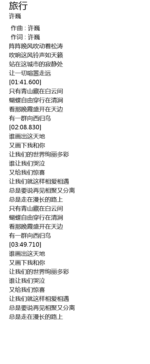 | [02:44.710] | zǒng shì zǒu zài màn cháng de lù shàng |