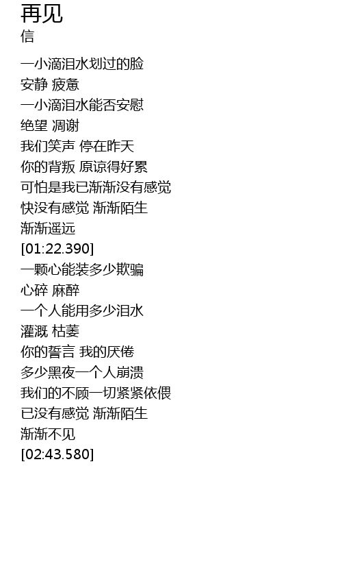 | [02:31.310] | 已没有感觉 渐渐陌生 |