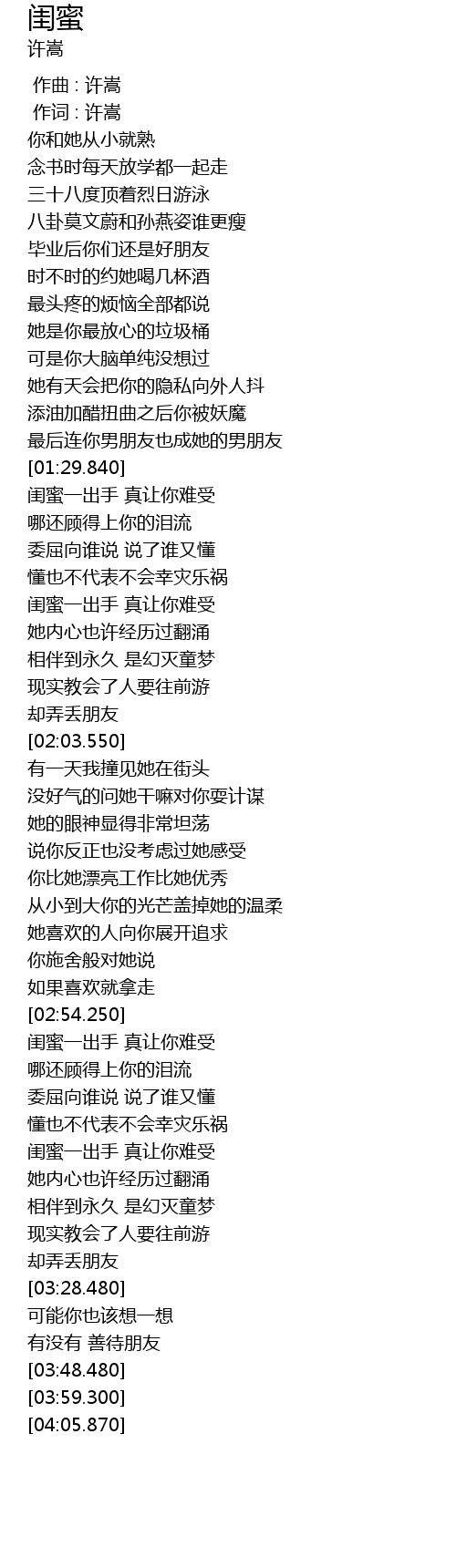 | [00:01.00] | 作词 : 许嵩 |
