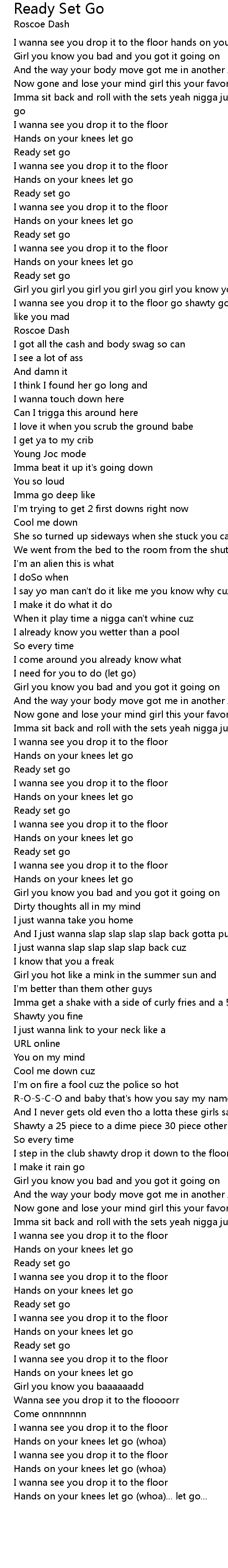 I wanna see you drop it to the floor hands on your knees let go (whoa) |