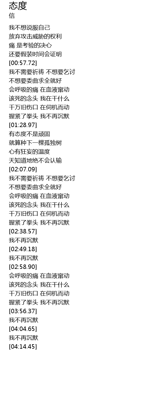 | [01:22.17] | 握紧了拳头 我不再沉默 |