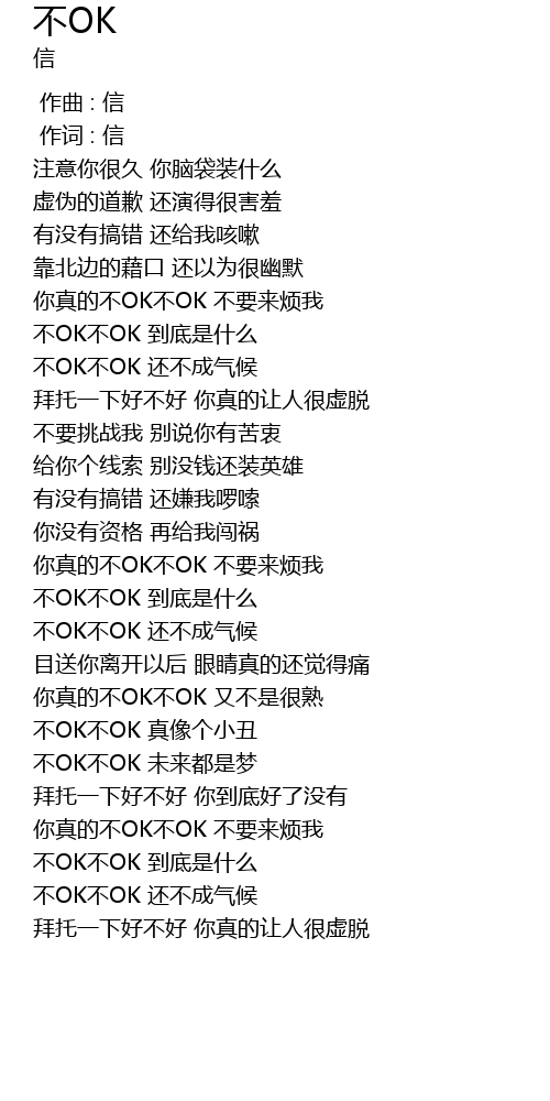 | [00:38.550] | nǐ zhēn de bù OK bù OK bú yào lái fán wǒ |