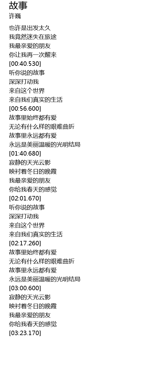 | [01:00.040] | 故事里始终都有爱 |