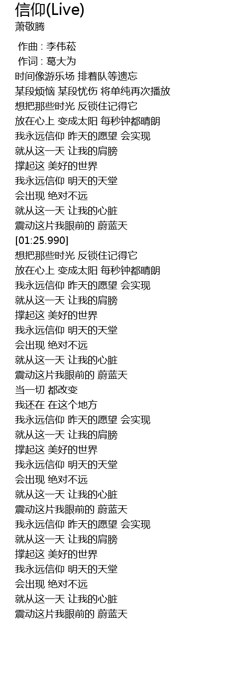 | [01:53.950] | 我永远信仰 昨天的愿望 会实现 |