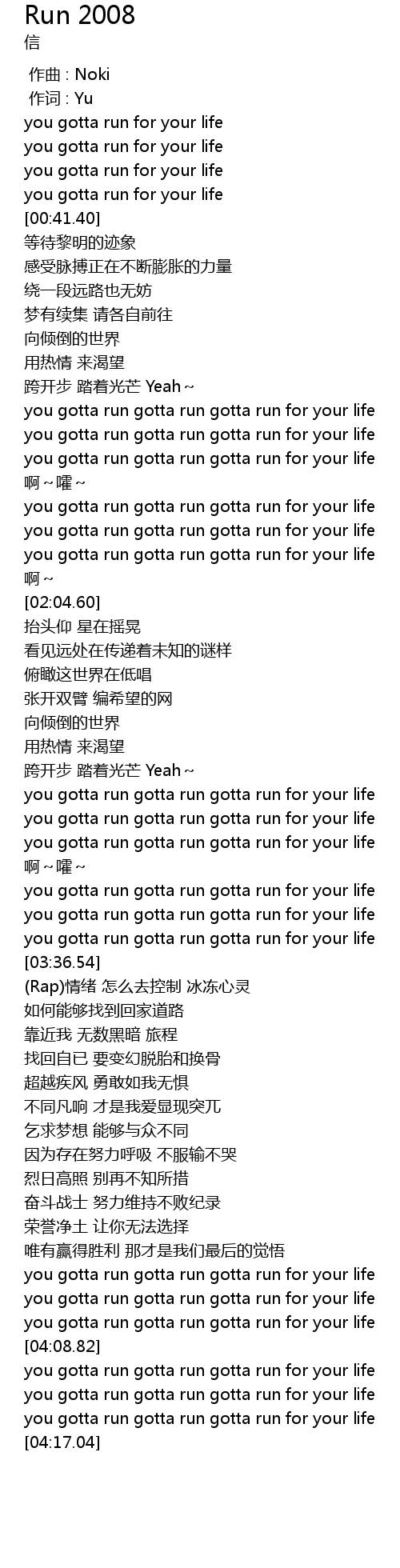 | [03:21.69] | you gotta run gotta run gotta run for your life |