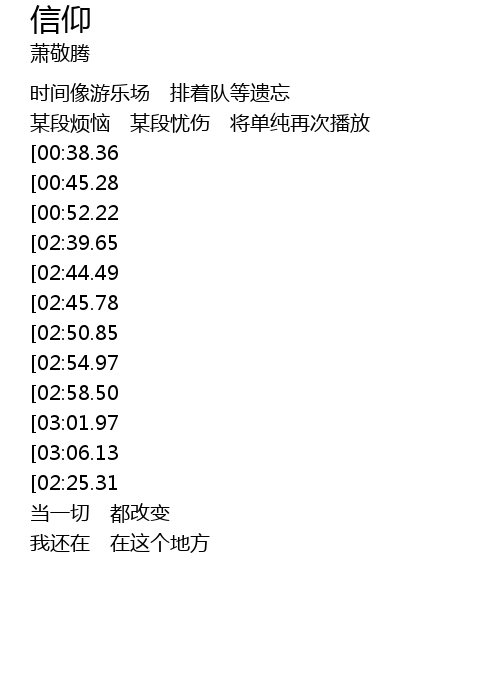 | [03:25.54][02:54.97][02:08.94][01:07.97] | 我永远信仰 明天的天堂 |