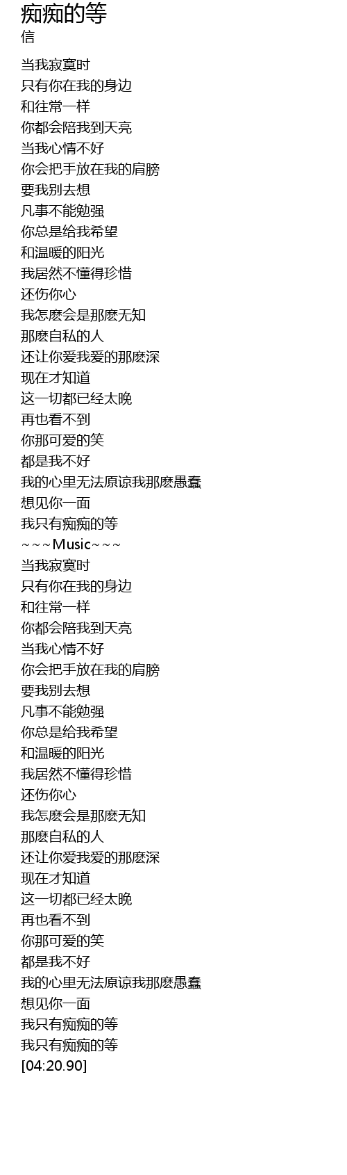 | [04:03.90] | 我只有痴痴的等 |