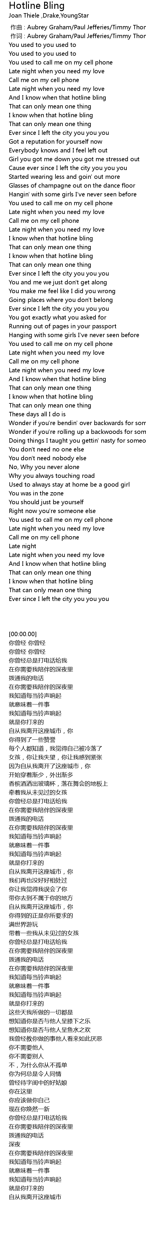 | [00:27.14] | And I know when that hotline bling |