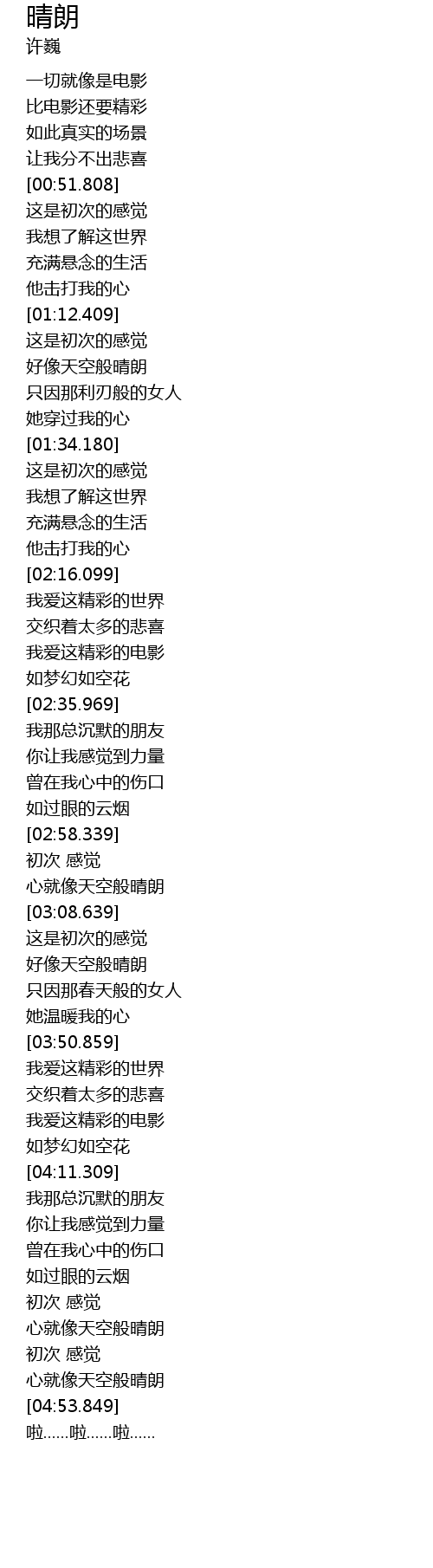 | [04:50.279] | 心就像天空般晴朗 |