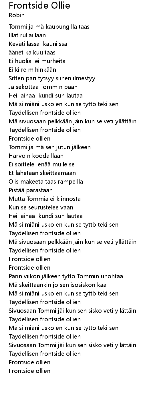 | [02:02.95] | M skeittaankin jo sen isosiskon kaa |