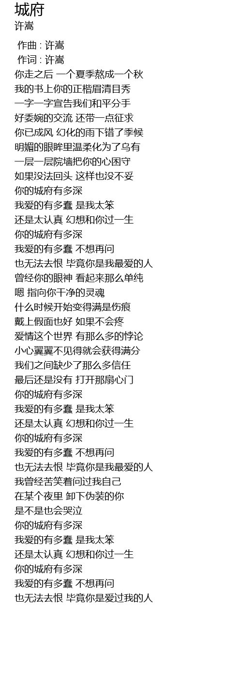| [01:15.050] | nǐ de chéng fǔ yǒu duō shēn |