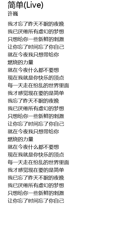 | 歌曲 | 简单(Live) |