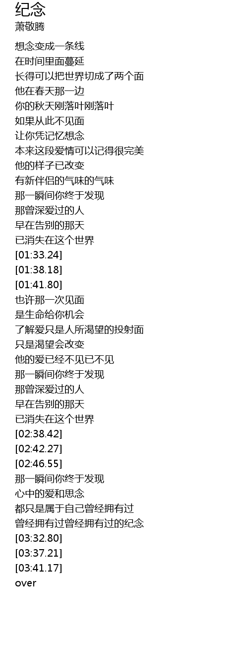 | [03:16.30] | 曾经拥有过曾经拥有过的纪念 |