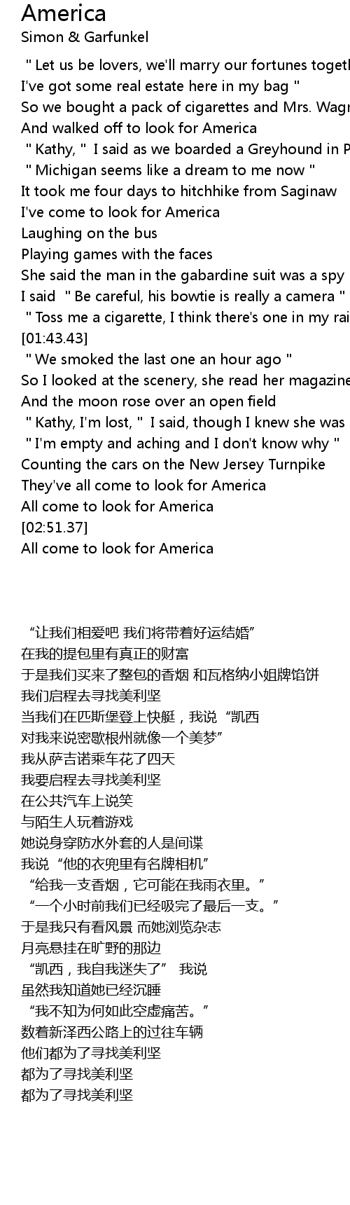 | [00:39.07] | And walked off to look for America |