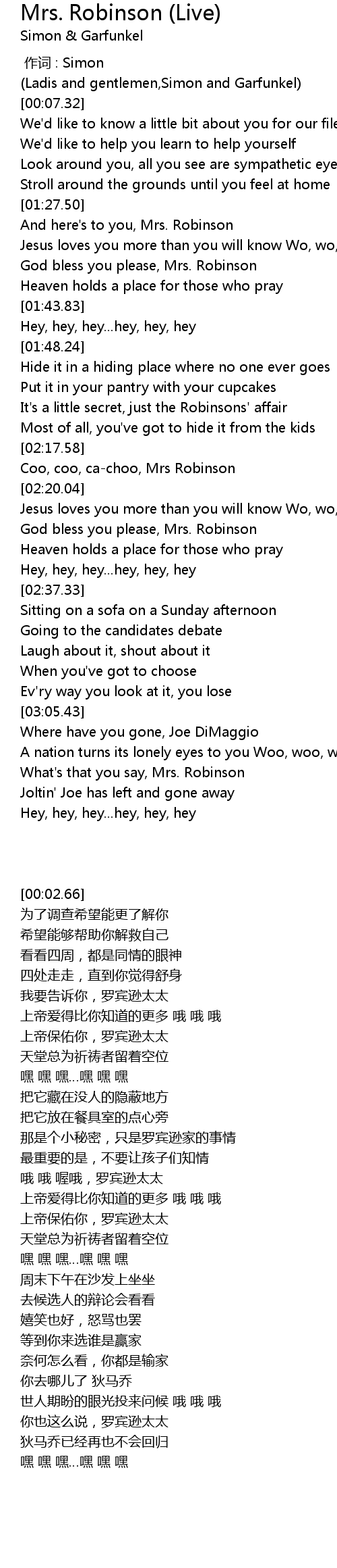 | [02:26.25] | God bless you please, Mrs. Robinson |