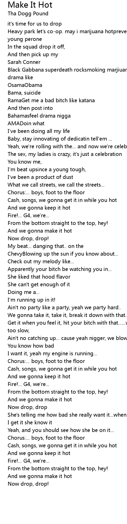 Get it when you feel it, hit your bitch with that......we move too fast, we move too slow,