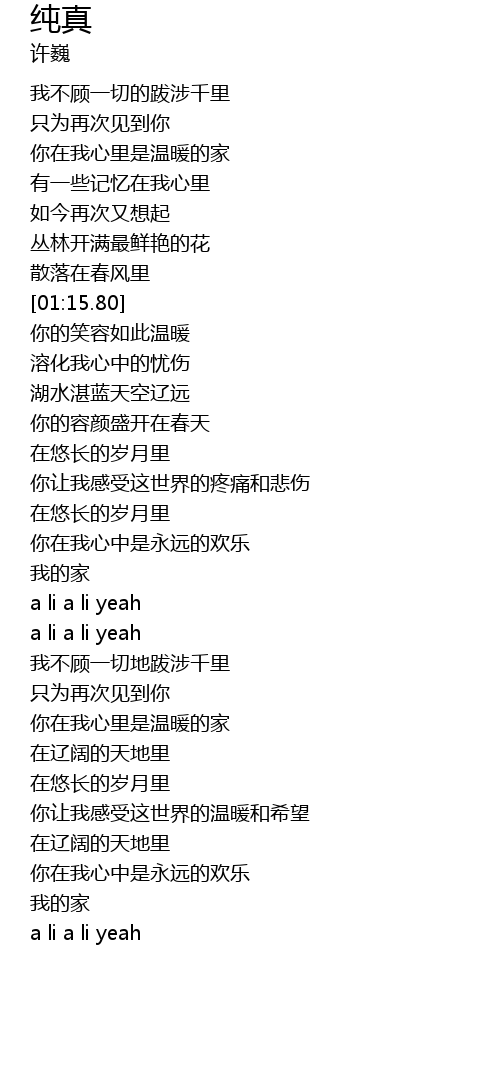 | [01:32.64] | 湖水湛蓝天空辽远 |