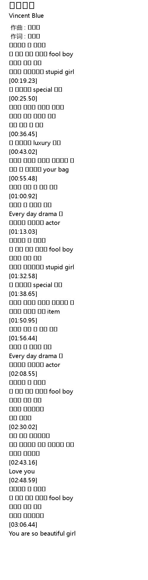 | [00:13.53] | 바라는 거짓말쟁이 stupid girl |