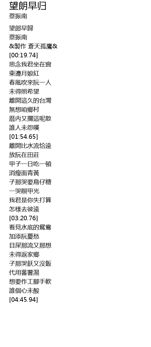 | [01:22.73] | li kai zhe jiu de tai wan |