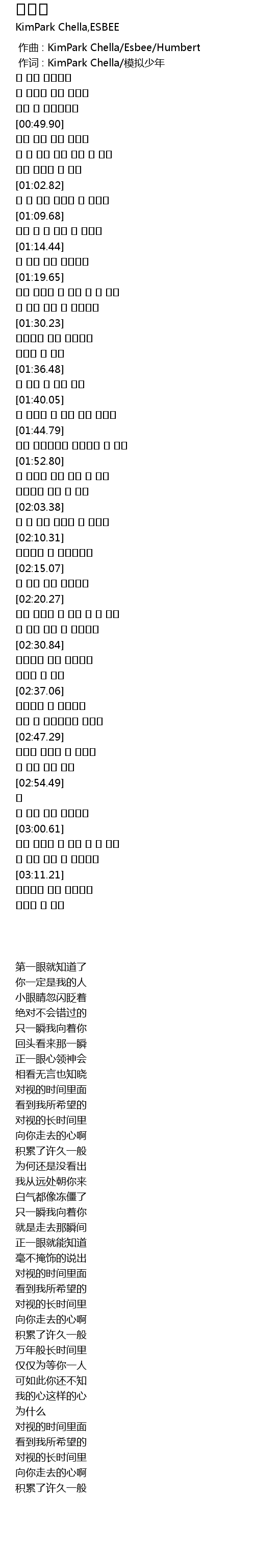 | [00:00.00] | 作曲 : KimPark Chella/Esbee/Humbert |