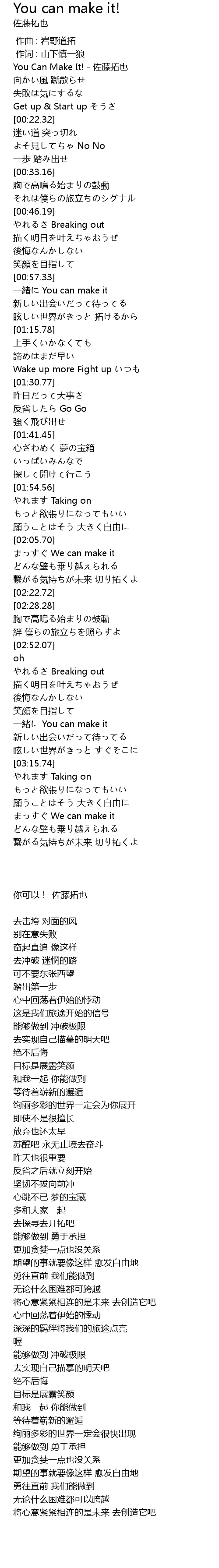 | [00:03.10] | You Can Make It! - 佐藤拓也 |