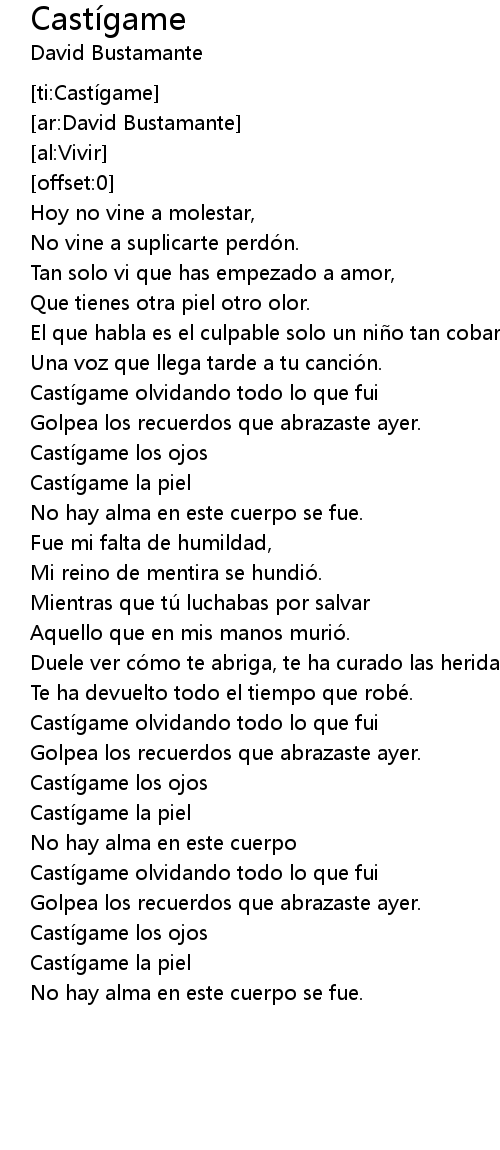 | [02:03.59] | Castígame olvidando todo lo que fui |
