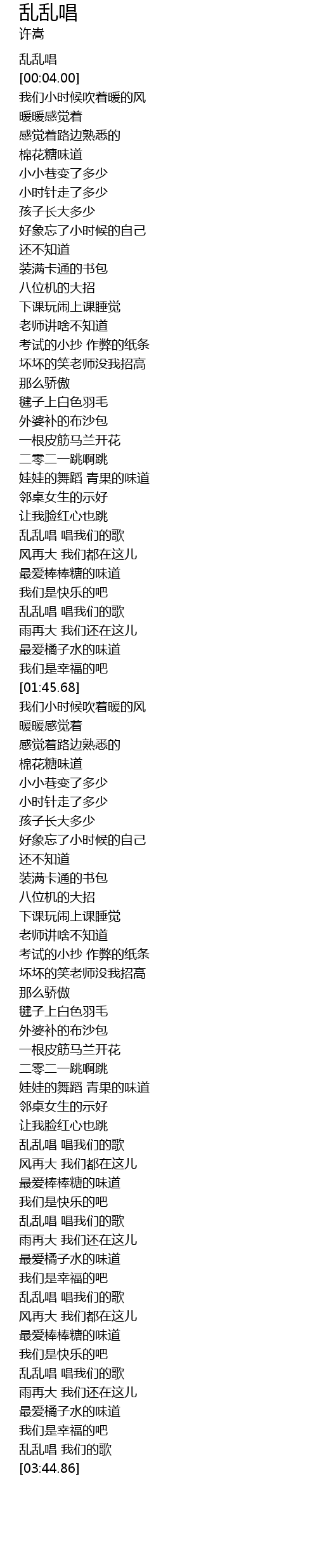 | [01:20.20] | 乱乱唱 唱我们的歌 |