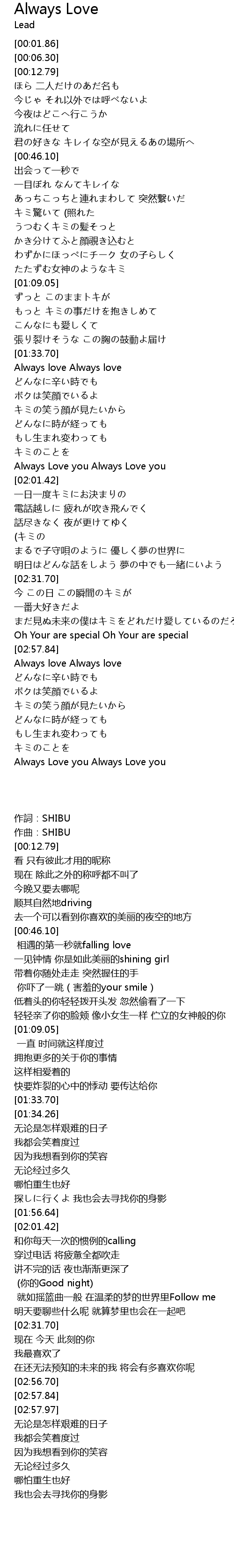 | [01:34.26] | Always love Always love |