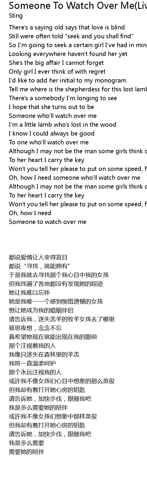 Oh, how I need someone who'll watch over me |
