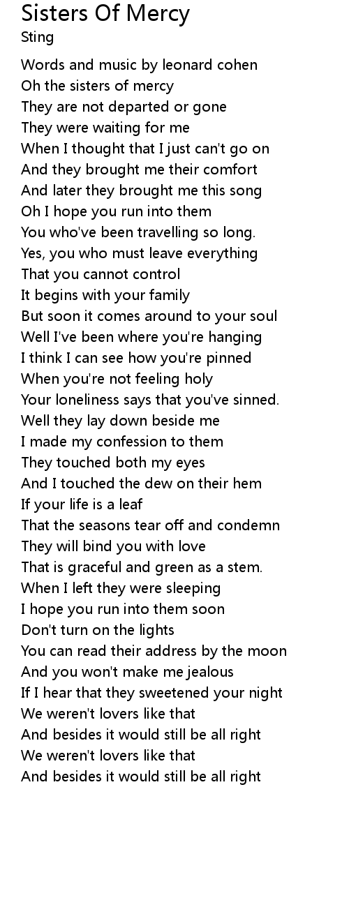 Oh the sisters of mercy |