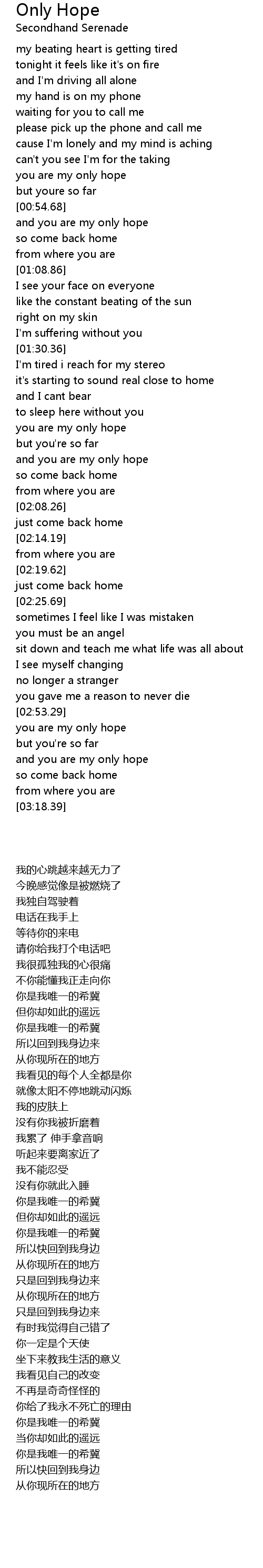 Only Hope 歌词