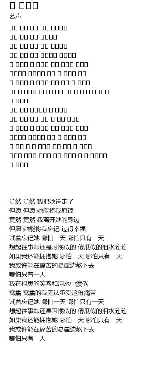 | [03:18.43] | 试着忘记她 哪怕一天 哪怕只有一天 |