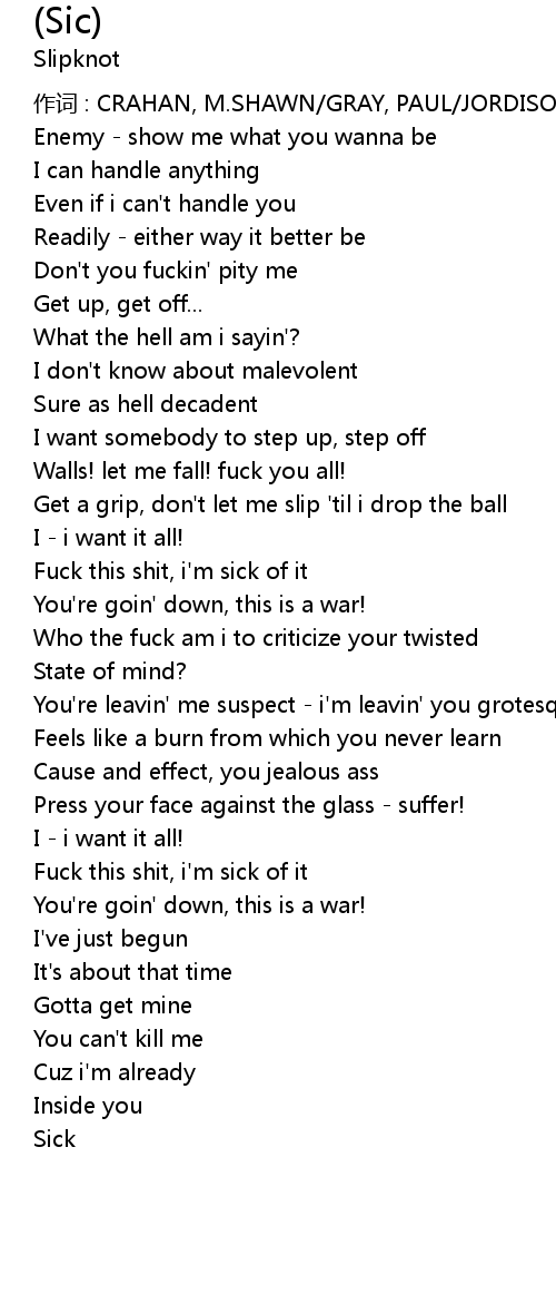 | 作词 : CRAHAN, M.SHAWN/GRAY, PAUL/JORDISON, NATHAN/TAYLOR, COREY | |