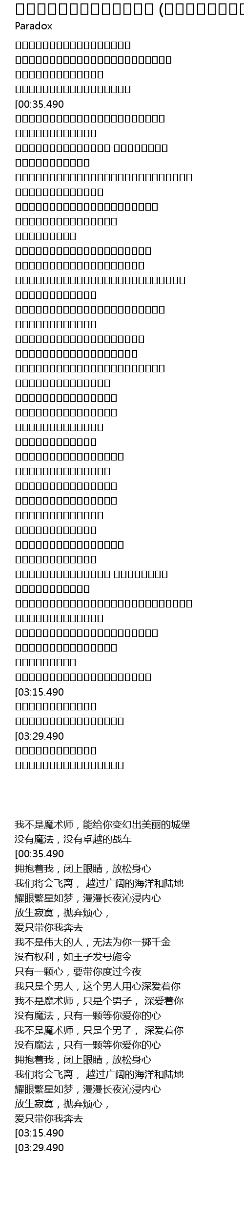 | [03:22.490][03:29.490] | 没有魔法,只有一颗等你爱你的心 |
