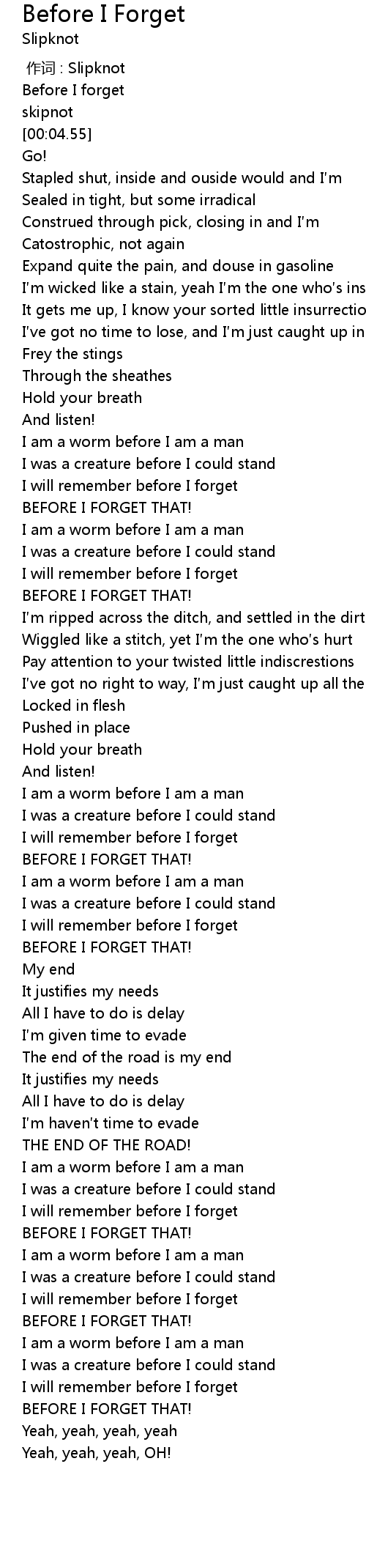 | [04:04.33] | BEFORE I FORGET THAT! |
