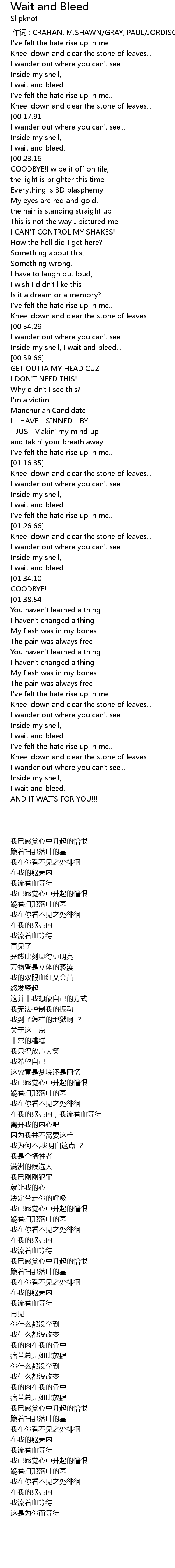 | [01:32.86] | I wait and bleed... |